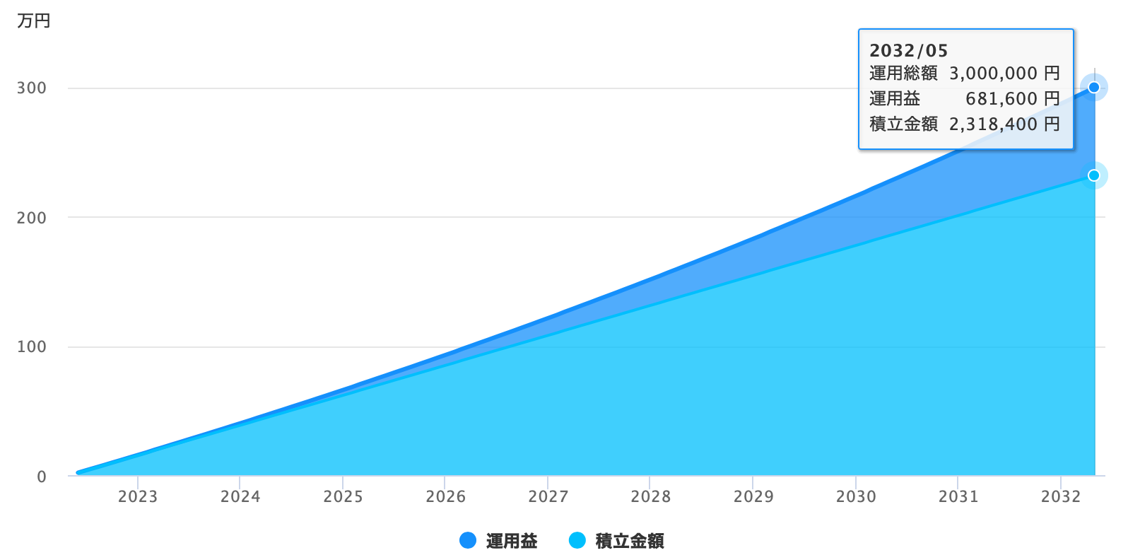【年利5%で運用すれば、10年間毎月約1万9,300円の積み立てで300万円準備できる】