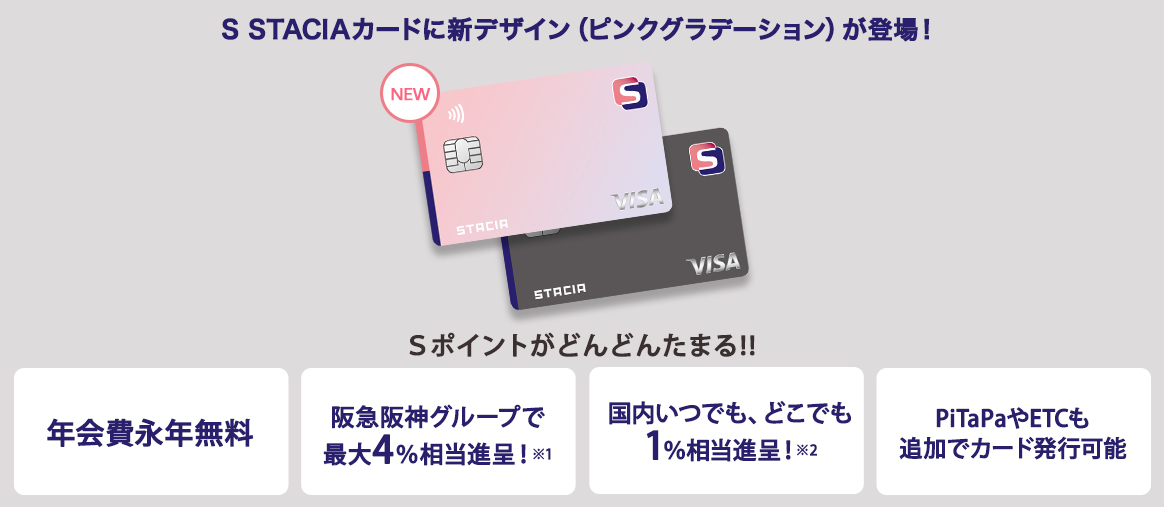 2025年4月1日をもって以下の通り、エメラルドSTACIA PiTaPa VISAカード、エメラルドSTACIA VISAカードの阪急百貨店、阪神百貨店におけるポイント優待率を改訂いたしました。