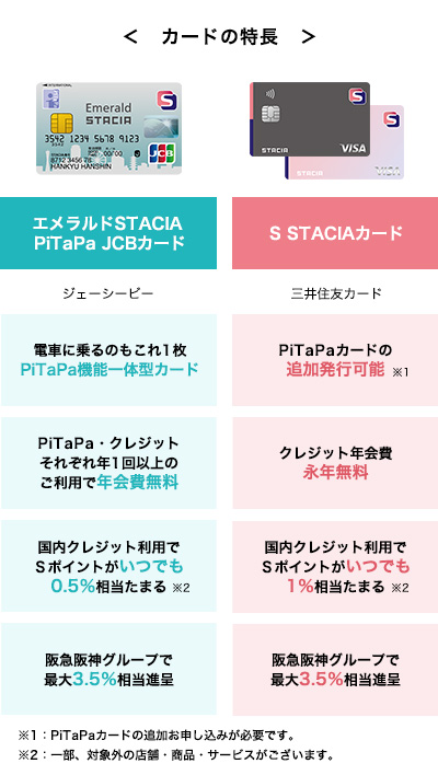 | Sポイントメンバーサイト | Sポイントメンバーサイトにご登録いただいているSTACIA PiTaPa NCカードの登録情報は、新しいSTACIAカードに引き継ぐことができません。お手数ですが、新規でお申し込みいただいたSTACIAカードで、あらためてSポイントメンバーサイトの新規ご登録をお願いいたします。 |