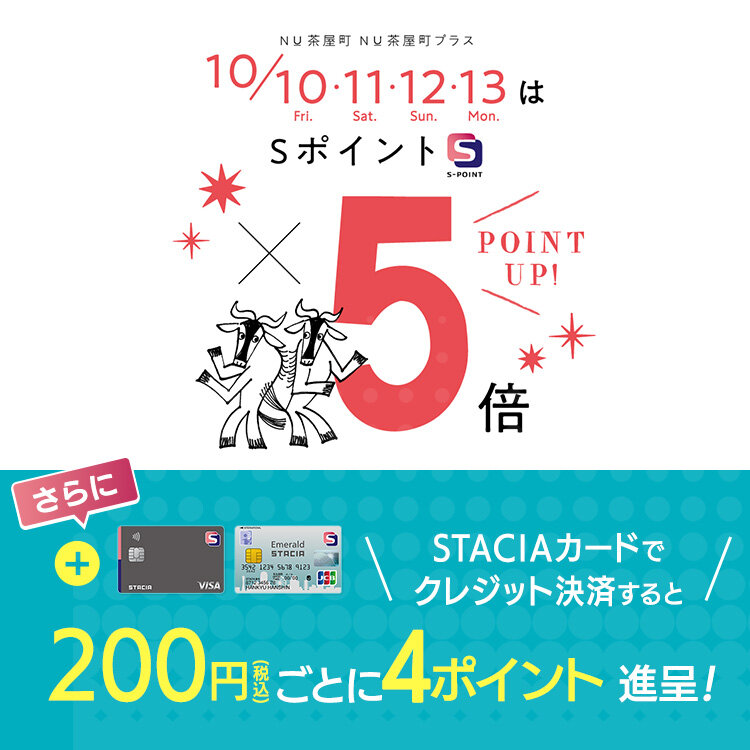 STACIAカードを含むSポイント対象カード・アプリをご提示いただくと、通常1%相当[110円(税込)ごとに1ポイント]進呈のところ、