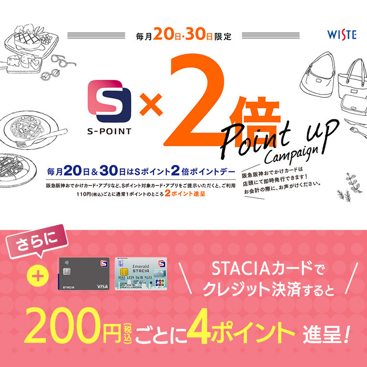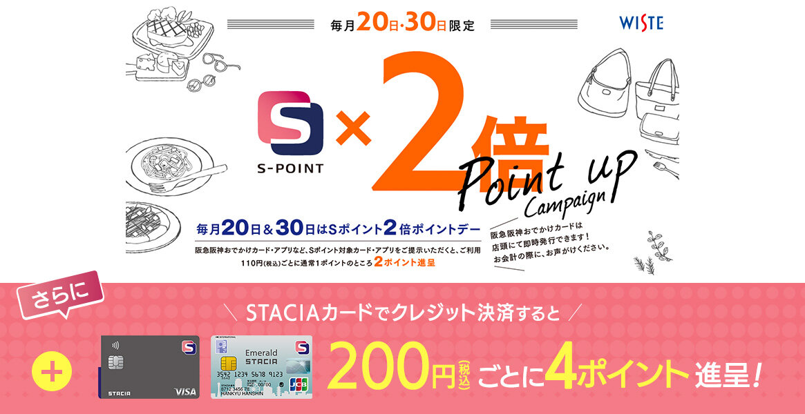 つまり、STACIAカードのカード提示とクレジット決済でSポイントがたまるのでダブルでおトク!!