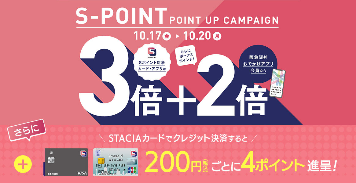 3倍の3%相当[110円(税込)ごとに3ポイント]、 さらに阪急阪神おでかけアプリのご提示なら5%相当[110円(税込)ごとに5ポイント]進呈!※1