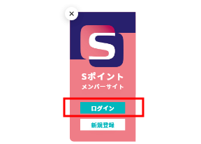 TOPページまたは下記のボタンから「Sポイントメンバーサイト」の「ログイン」ボタンをクリック。