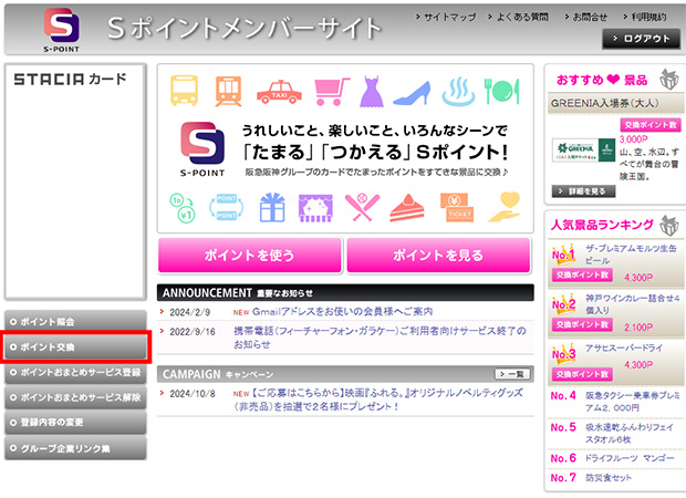 景品交換をするには、まずSポイントメンバーサイトへのご登録が必要です。